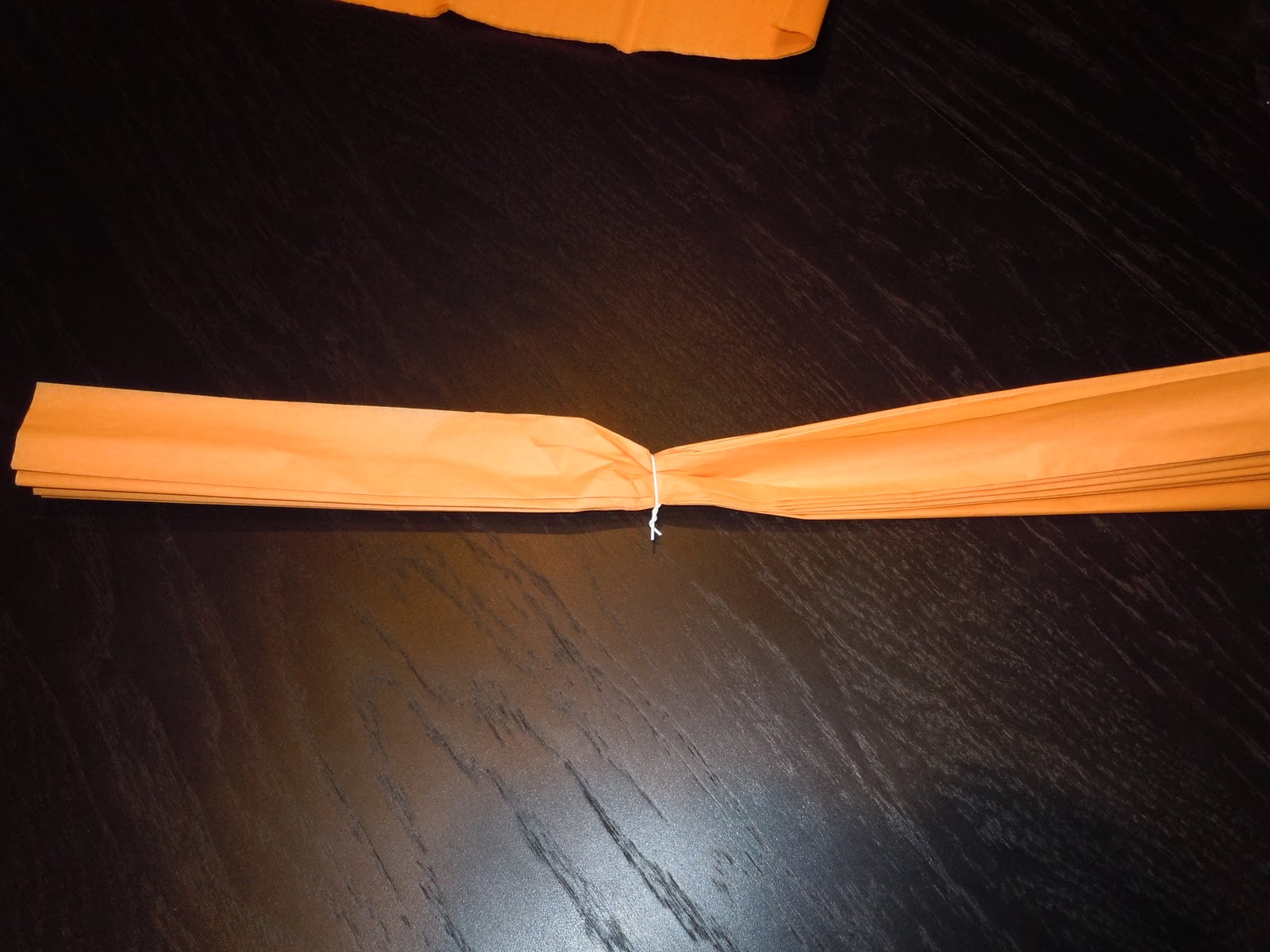 Fold about six or more sheets of tissue accordion style. Untwist a paper clip and twist again in the middle (you can also use a twist-tie or piece of string).