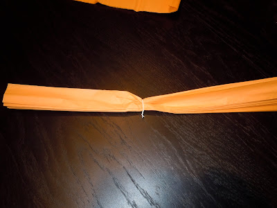 All you need are scissors, ribbon and tissue paper (your color preference). These can be as big or small as you prefer.