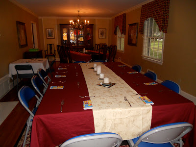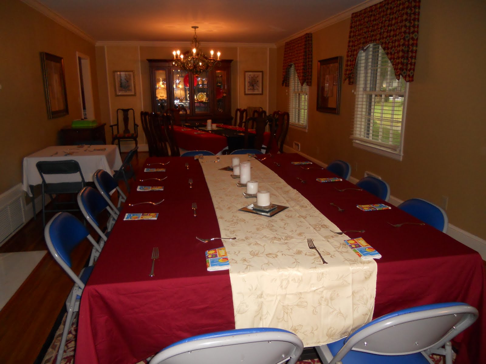 My mom organized the night perfectly! Guests were to come at 6pm and mingle until dinner was served around 6:30pm. Dinner was catered (my mom doesn't enjoy cooking) and we had chopped barbeque served with buns, barbeque chicken breasts, baked beans, pineapple casserole dish, chips, and other dishes were served. The food, company, and the cake were a hit with everyone. Now we all can't wait to see the boys play football!