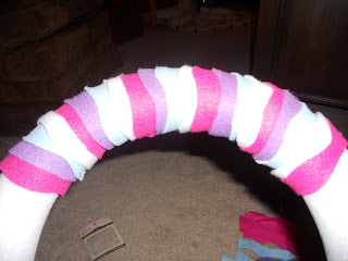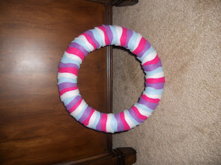 This picture won't straighten, but at least you get to see my final product. Of course I have to add details that relate to my project to my wreath. I plan on putting the items on it with pins so I can take them off after I present and still have this cute wreath!