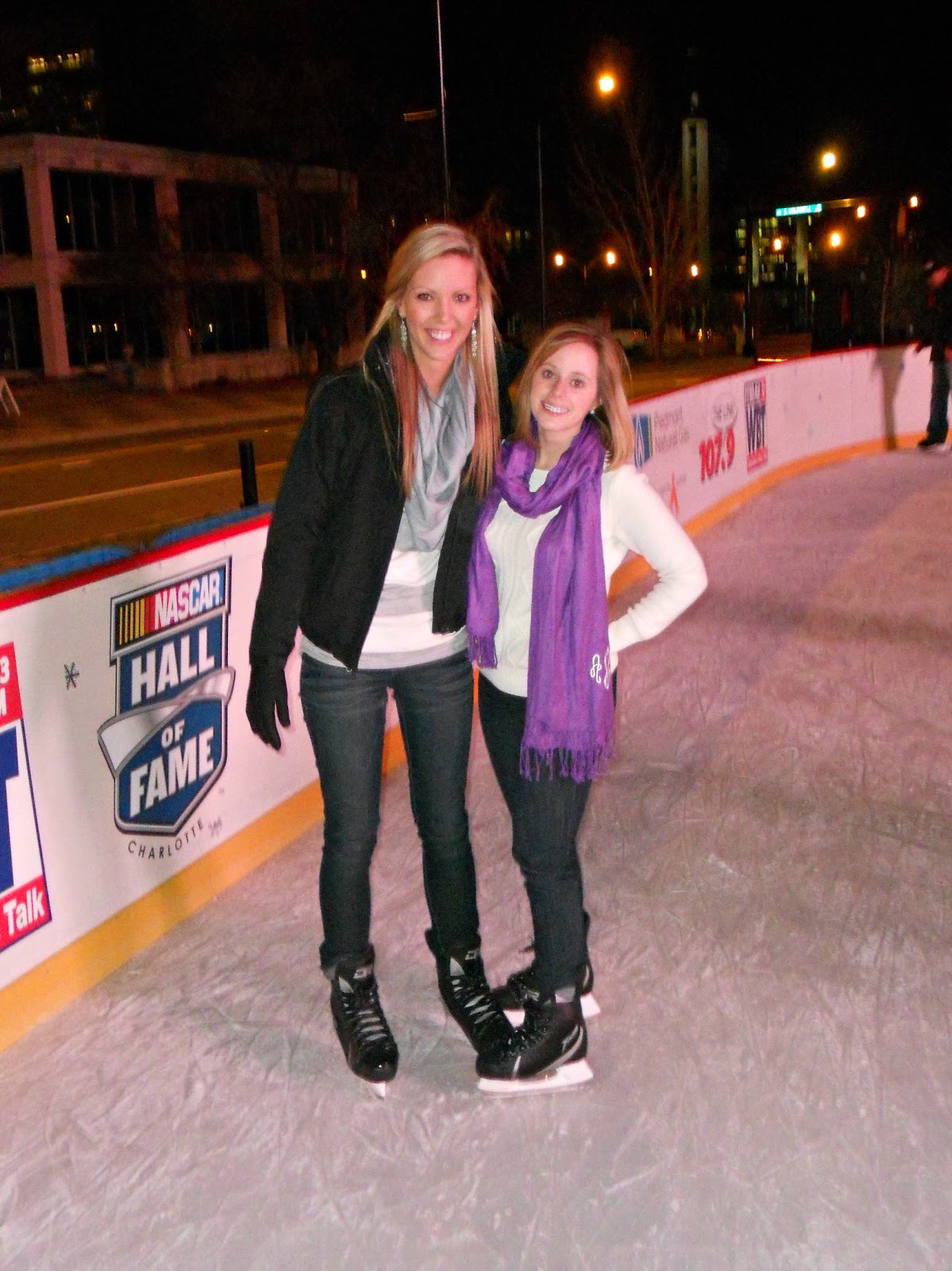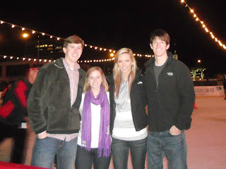 Friday night Stephen and I went ice skating downtown with one of our best couple friends {Jennifer & Mac}. This was my first time ever ice skating and I guess I didn't do too awful...at least I got off the wall! :) All three of the others put me to shame though, but I'm okay with that!