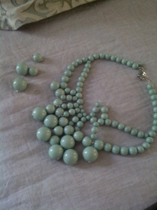 I previously mentioned how much I loved my new spearmint bib. Well sad news, it didn't make our flight to the BVIs. I carefully wrapped it up but the beauty came out in several pieces. Seriously almost shed a tear.