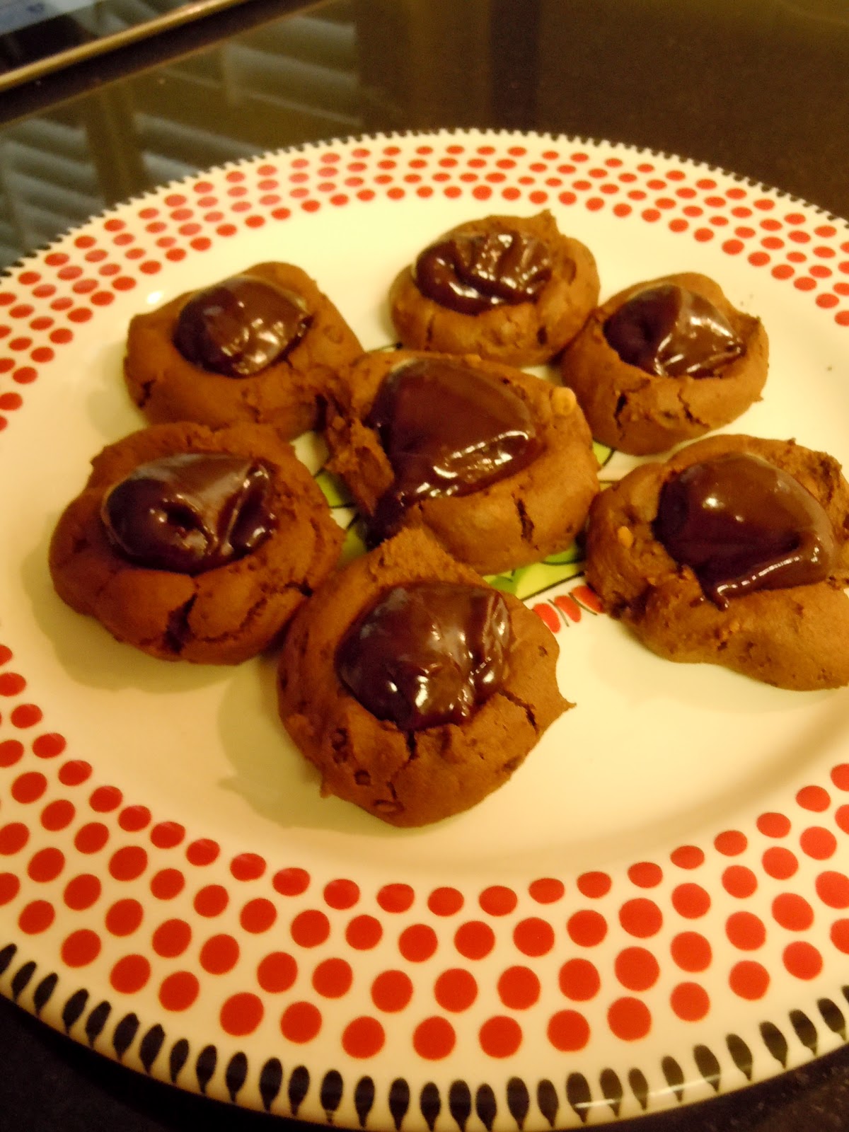 - Shape into 1 inch balls and place on un-greased cookie sheet; press thumb into the center of each ball to make an indent.
