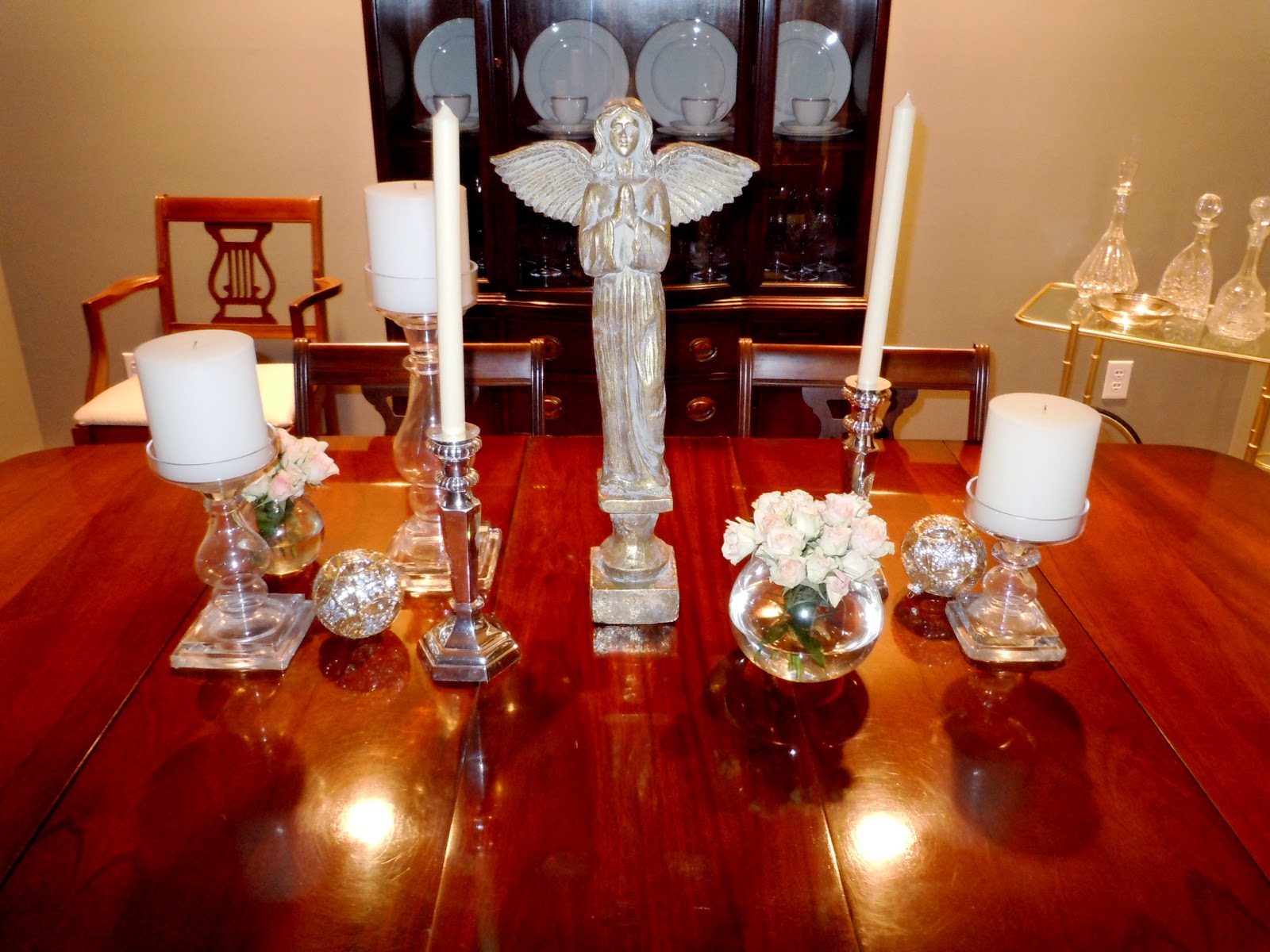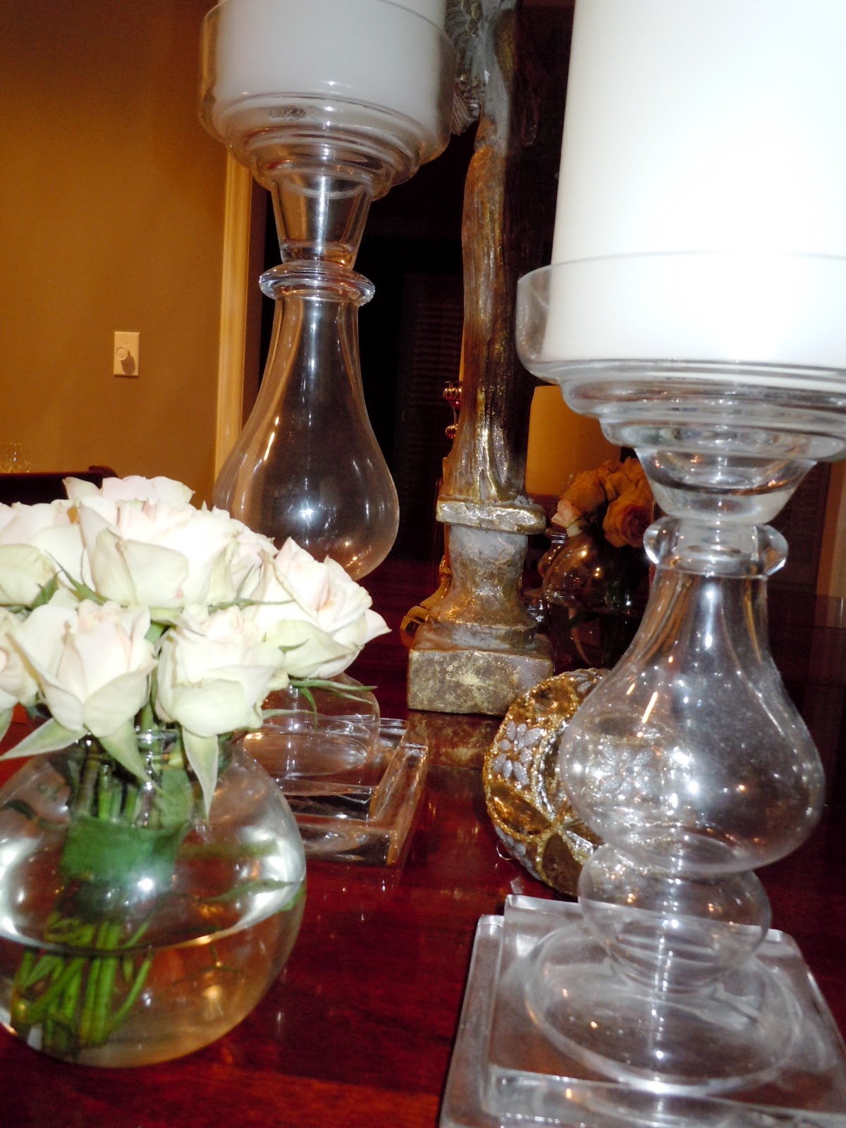 Cheap centerpiece made from Hobby Lobby clear ornaments and acrylic paint swished inside (cost: $4)