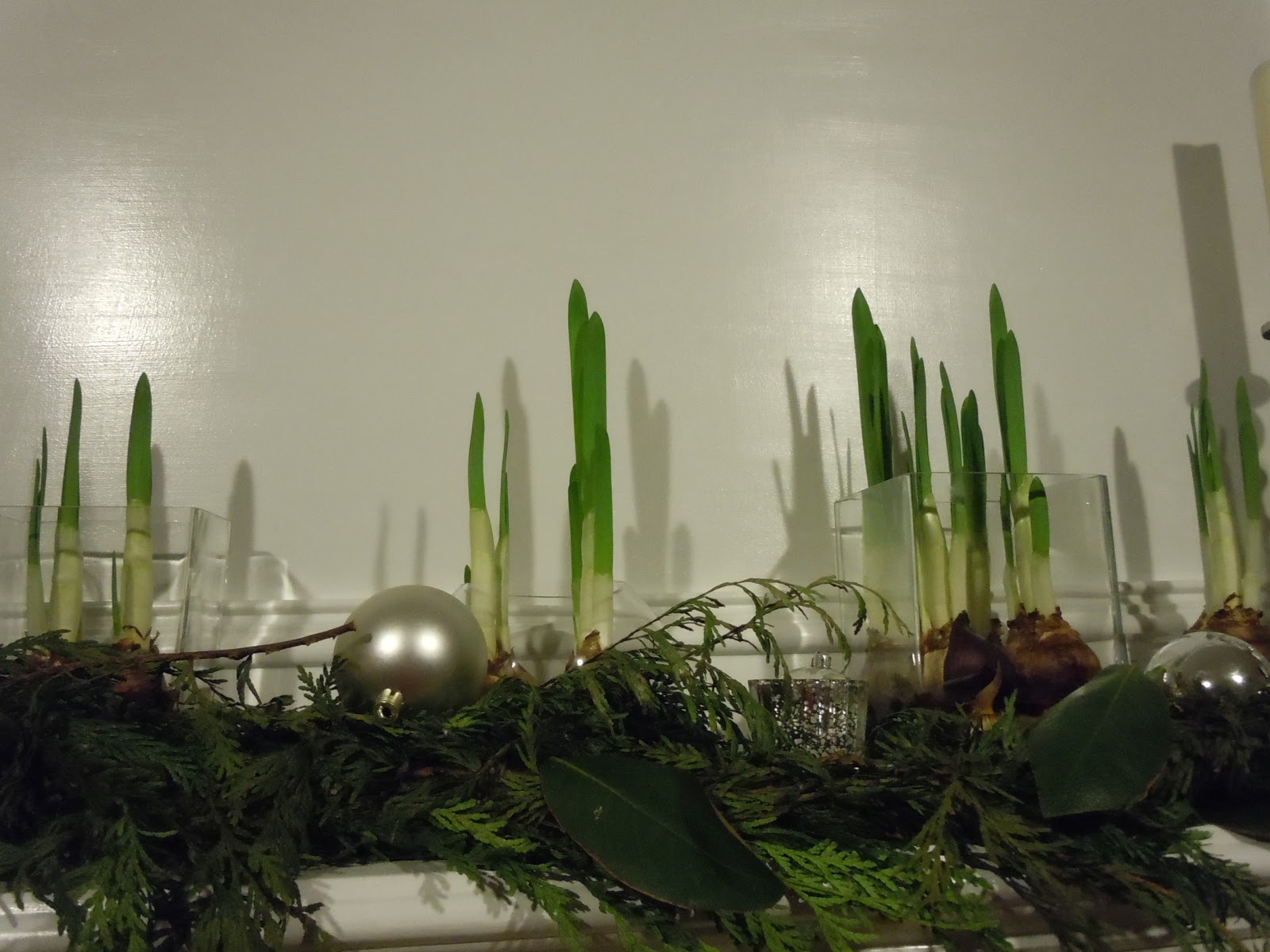 My paperwhites haven't bloomed yet but I am trying something new this year, courtesy of Camille Styles.
